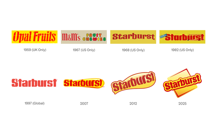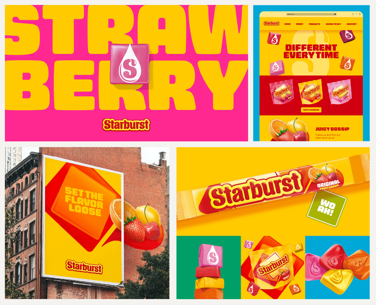 From their presentation about the new identity they had this to say: Evolving the brand foundations we established a new sense of individuality, and harnessed a Starburst definition of joy. With refreshed brand assets, a reimagined word mark, playful typography and a distinct colour palette, the Starburst iconic square shape and fruitiness now lives in a universe of joy that invites everyone in, stands out and differentiates the brand’s many SKUs